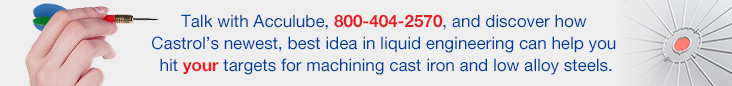 Acculube recommends Castrol Hysol XBB Series for machining cast iron and low alloy steel. Its unique, extended life formula delivers exceptional performance on ferrous metals. It also: